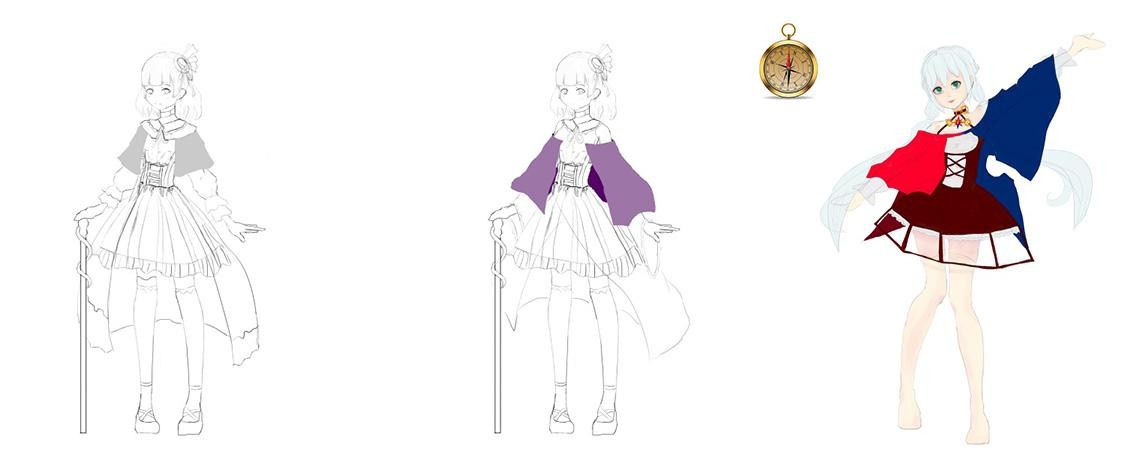 以鋼骨式設計帽子和義肢的外觀、齒輪,最後再調整一下配重
