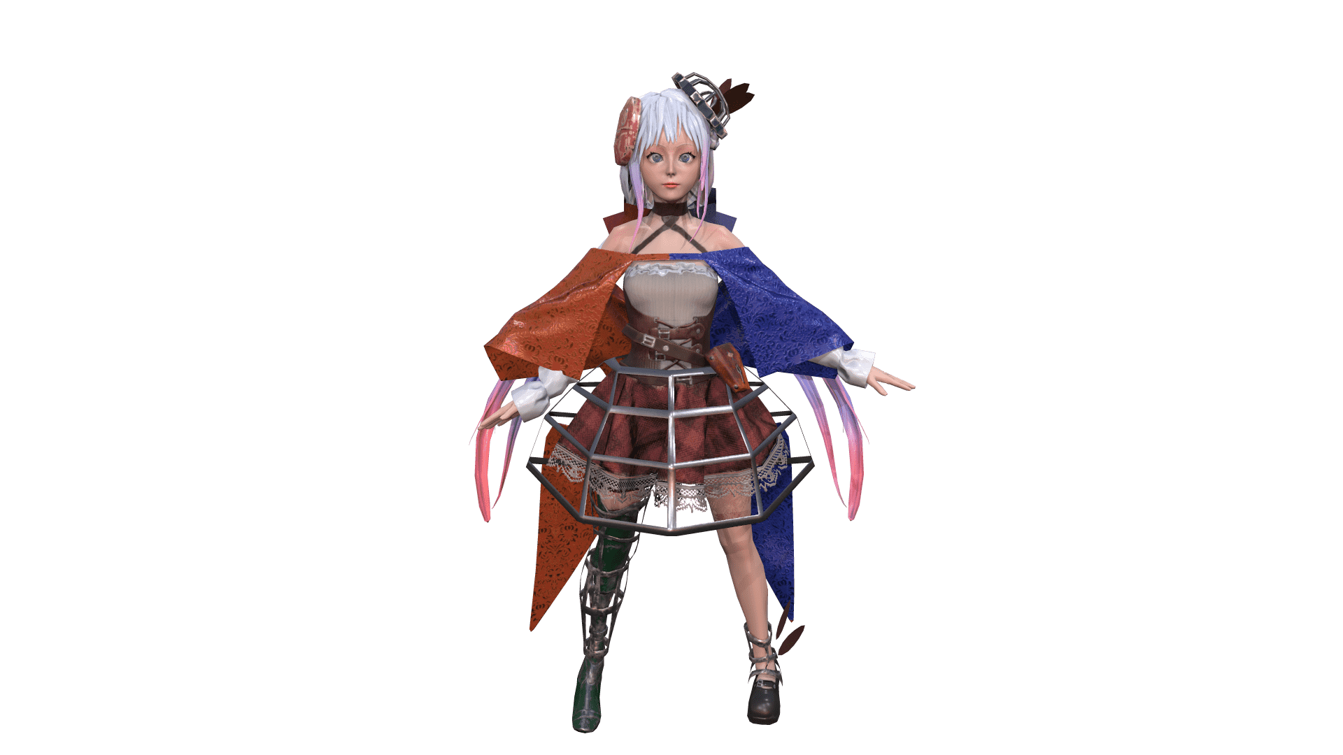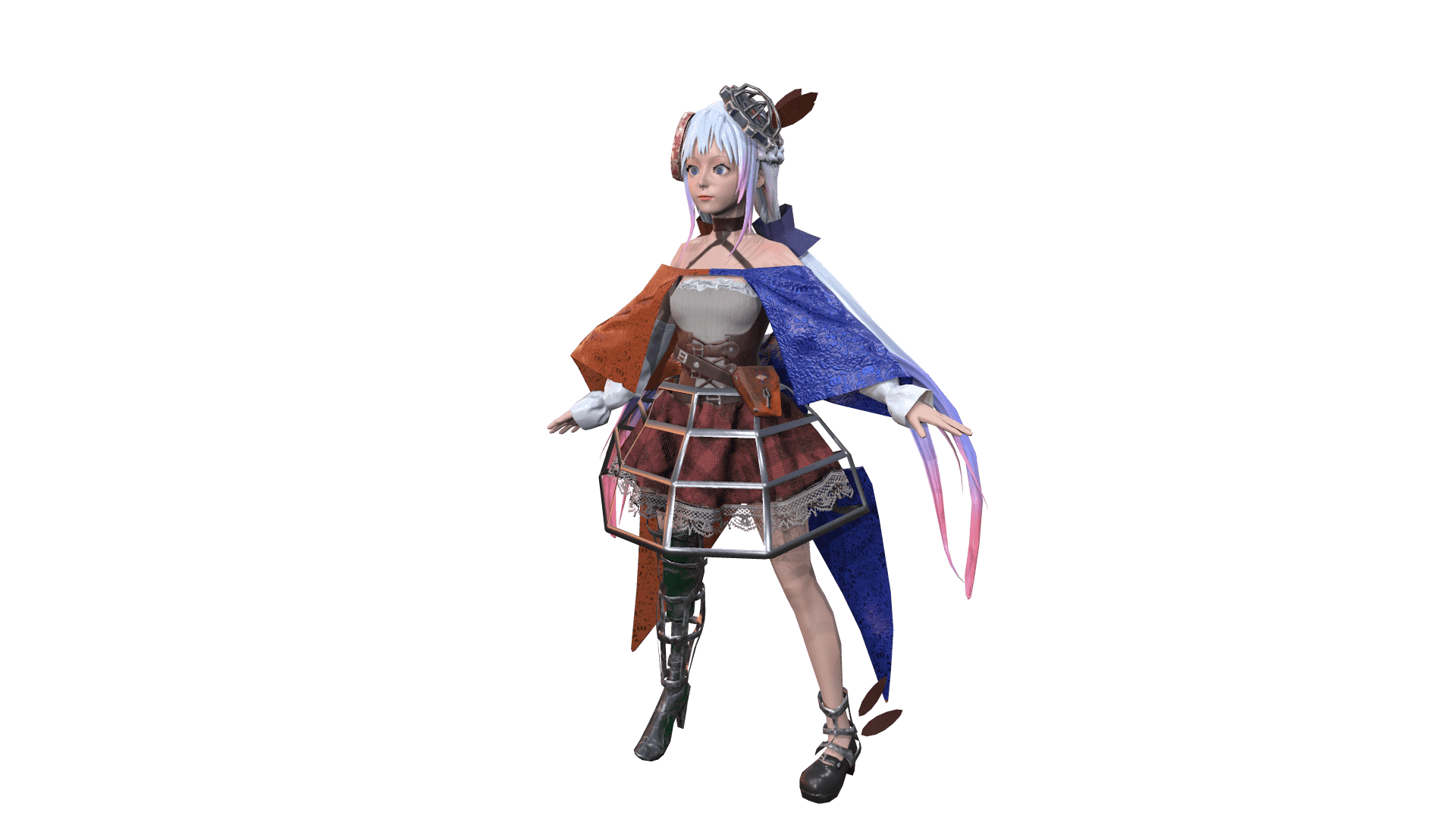 以裙襯為特色的鋼骨義肢和帽子